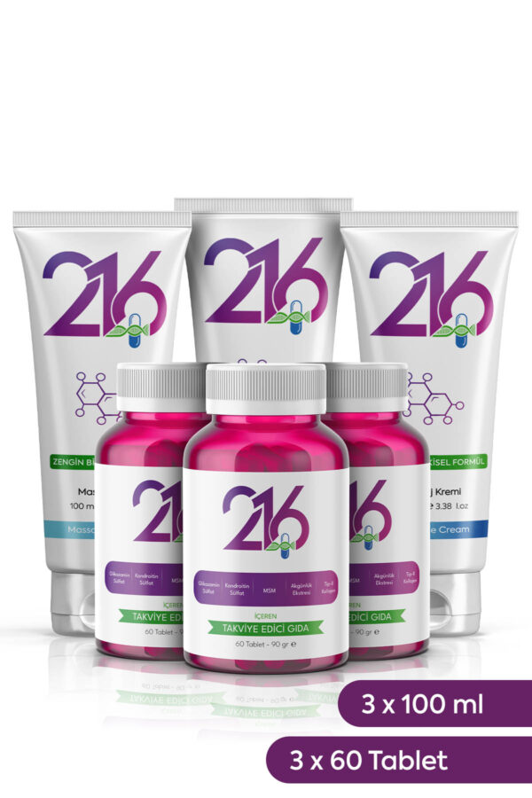 216 Tablet, eklem ve kas sağlığınızı desteklemek için özenle formüle edilmiştir. Her bir tablette bulunan özel bileşenler, vücudunuzdaki ağrıların hafifletilmesine ve günlük hareketliliğin artırılmasına yardımcı olur. Düzenli kullanımda etkisini kısa sürede hissedeceğiniz bu ürün, yaşam kalitenizi yükseltmek için yanınızda! 60 adet tablet içeren ekonomik ambalajıyla uzun süreli kullanım için idealdir.